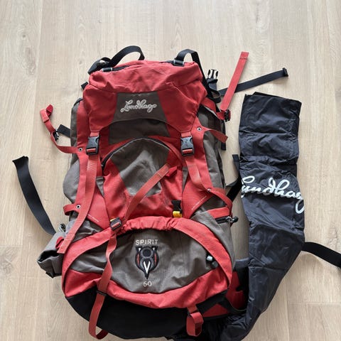 vurd.solgt. Lett og praktisk sekk med 2 store lommer framme og 4 lommer m/glidelås på sidene i god bruks stand.