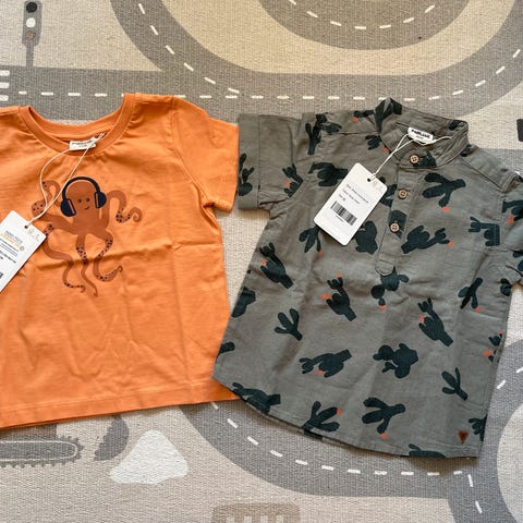 - Orange t-skjorte fra Tumble 'n dry med broderte raketter