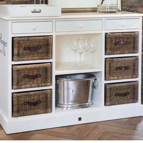 Rustikk sjarm. En detaljert og ukonvensjonell kommode med et uformelt vintageutseende og en attraktiv blanding av materialer og stiler. 11 skuffer.