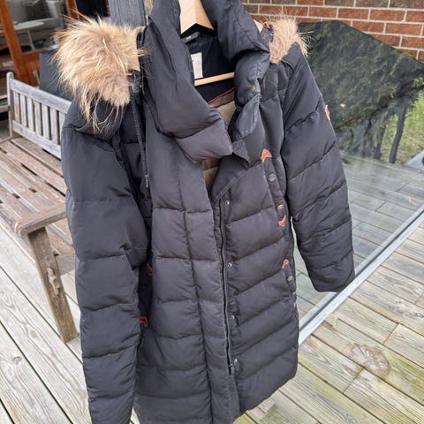 Flott dunjakke fra italienske AFG. Italiensk størrelse 46 som tilsvarer ca str 40. Avtagbar hette. Nypris ca kr 8500,-. Kjøpt hos Møller i Oslo