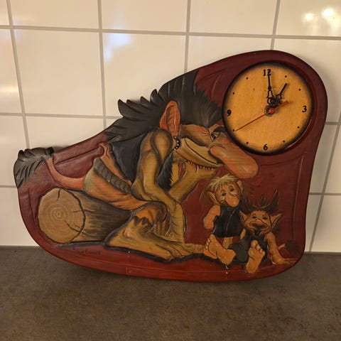 Utrolig vakker veggklokke med maleri.