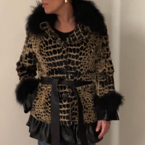 lang jakke kåpe vintage liten størrelse ekte pels inne