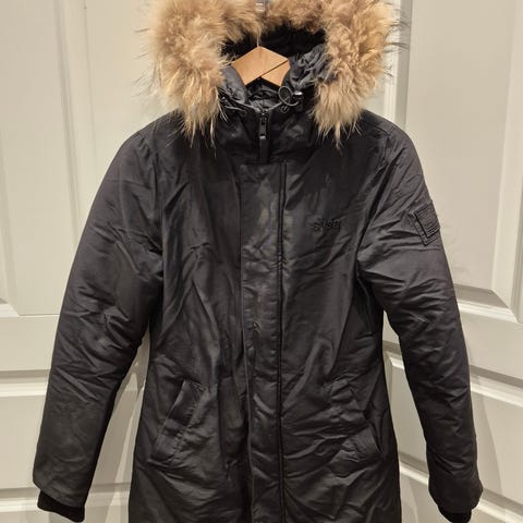 Størrelse S, ekte pels. Brukt veldig fint og veldig lite, Både for ungdom og mammajakke