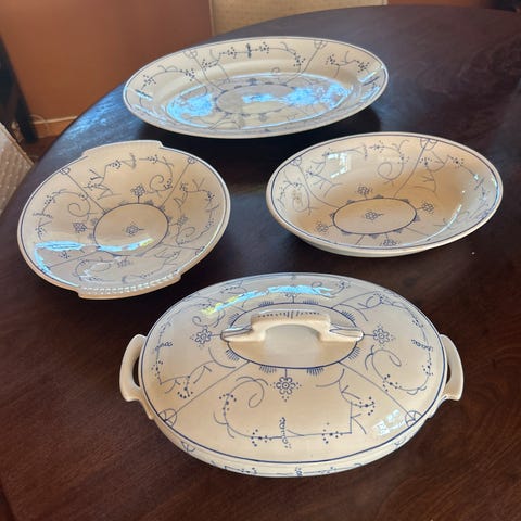 Umalt kaketine klar til eventuell rosemaling eller annen dekorasjon. Også fin og praktisk til å bruke til pynt eller kaketransport som den er.
