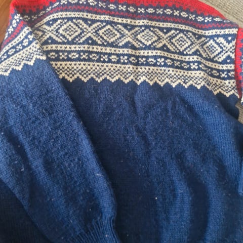 Lite brukt ullgenser, da den krympet litt i første vask. Var M men er nok XS/S nå. Nydelige farger.