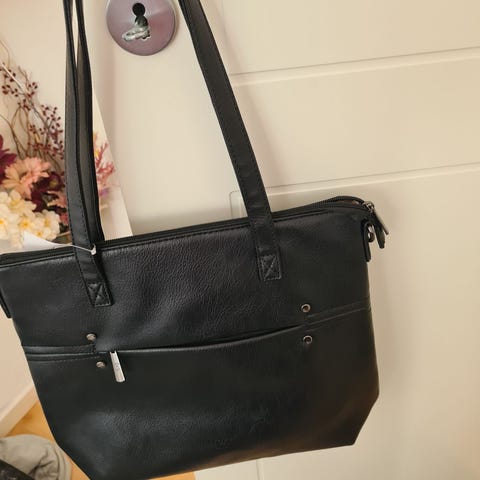 Lite brukt håndveske i skinn fra The Trend. Praktisk innredning med flere rom. Ingen bruksmerker/slitasje.