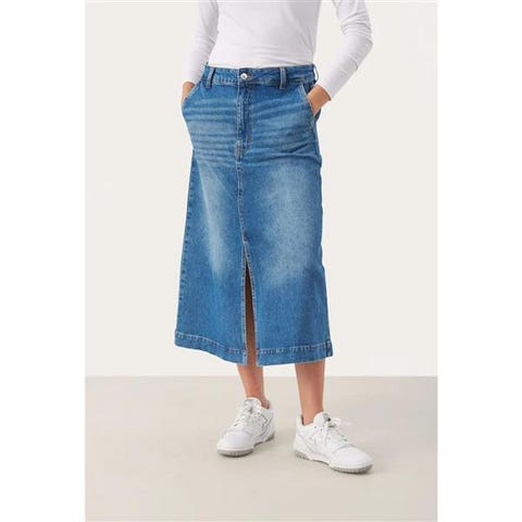 • veldig fin og kul denim farge / vask (finere enn på bildene ~ veldig vanskelig å få frem fargen riktig på bilder ~ mellomting mellom bildene jeg har tatt ute og inne ~ kanskje nærmest en mellomting mellom bildene på bilde 3) (bildene er av skjørtet i str S, som er solgt)