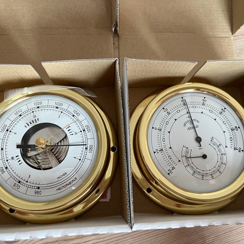 Termometer som bord pynt, veldig fin med beskyttelse ramme i gull farget metall.