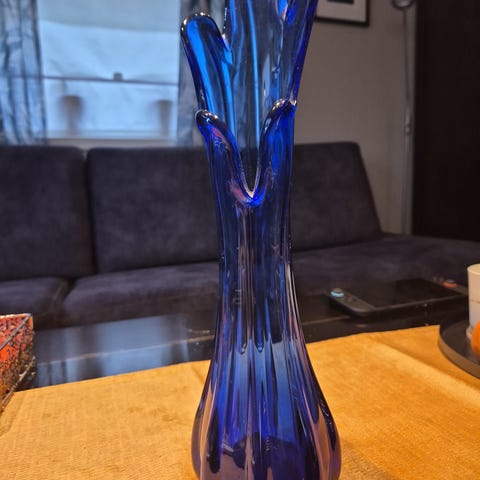 Glassvase koboltblå 50 eller 60 tallet