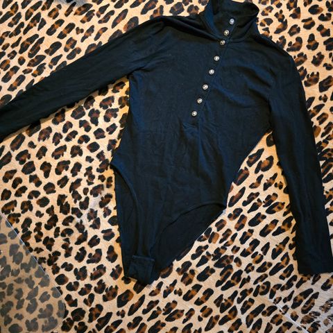Unik lyseblå topp i sheer med fløyel detaljer (blomster, kanter). Lappen holder på å falle av (se bilde)