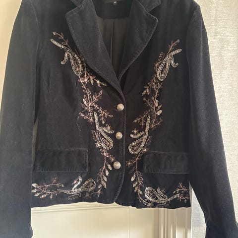 Stilig dressjakke og skjørt i sort fløyel selges