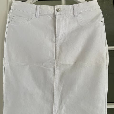 Hvitt Filippa K denim skjørt i størrelse S selges. Kun brukt et par ganger. Uten feil og merker.