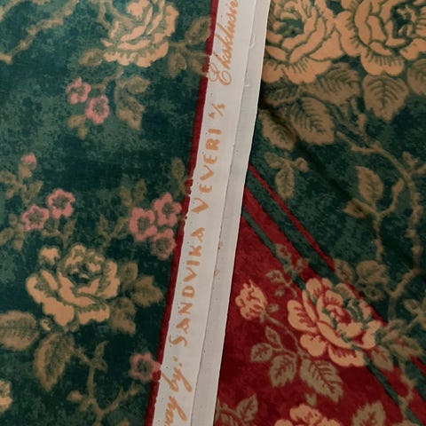Her får du MYE for pengene. Denne er ikke brukt på flere år og oppbevart tørt i innebod, det samme gjelder oppskriftene. Du får med MANGE oppskrifter, bl.a på de vevsbildene du ser her. Selges da vi ikke kan å bruke, denne er fra min oldemor. Flere av hennes arbeider henger i ranheim menighetshus!