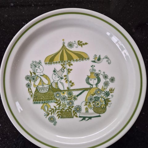 Fatet er håndmalt, og har diameter 29,5 cm. Høyde ca. 3,5 cm.