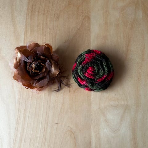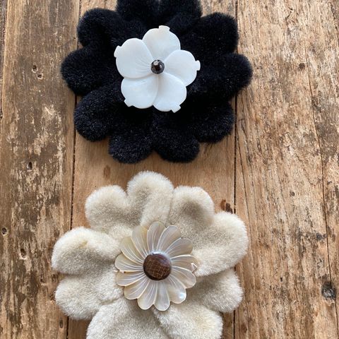 Pris kr 150 hver, begge blomsterbrosjene selges for kr 225 til sammen.