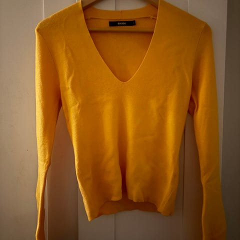 Stor og luftig genser som er svært lite brukt selges videre. Fra bikbok. Oppgitt som størrelse small, men som du ser veldig stor. Så Medium - large passer bedre. Men den skal være posete. Ingen merker eller defekter.