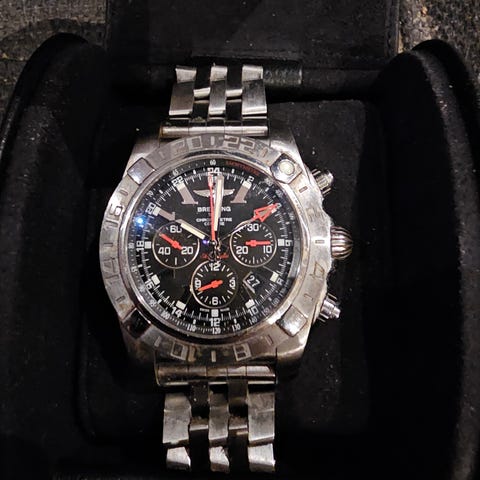 Evt bytte til en Mont Blanc, Breitling Navytimer eller en Tag Heuer Chronograph med lærreim mot et mellomlegg.