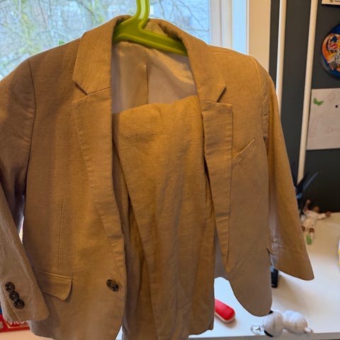 Lastebil i bevegelseFiks ferdig230 kr158H&M dressett gutt jakke, vest og bukse 158 beige bomullOrkangerLegg til som favoritt.