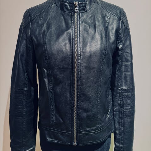 str. 170, passer meg som bruker ca 36/38. Skinnjakke kjøpt for 600kr (org. pris) Jakken er av imitert skinn.