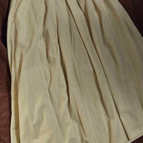 Tynn og litt gjennomsiktig, veldig behagelig på huden. Antageligvis silk.