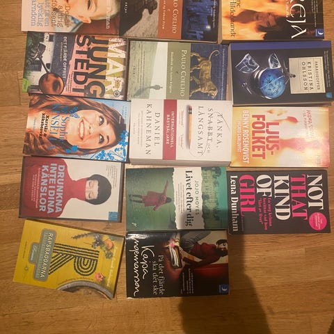 , 2 stk kokebøker 300kr, astrologi blå og orange 200kr, 2 stk olebrum for 300kr de er ny, amuleten 100kr, ny i Norge 100kr, planet måne og solsystemet PR stk 100kr