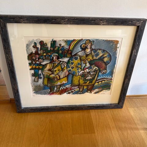 Innrammet bilde, «Redet» fra Thorstein Rittun. Dobbelt paspatur. Bredde 75cm høyde 64cm