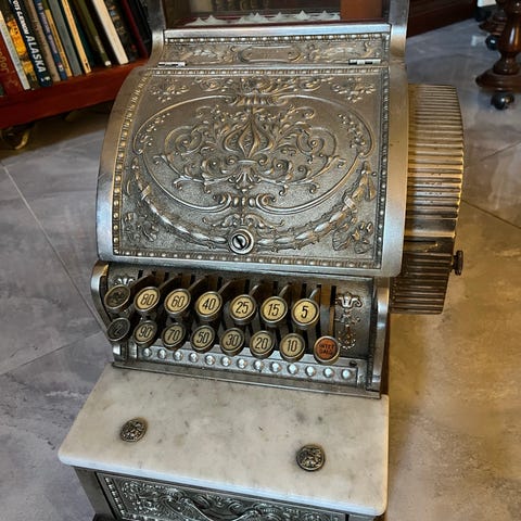 Kassaapparat eller bankterminal.Stor og veldig tung. L-80. H-60. B-50. Åpnes ikke.