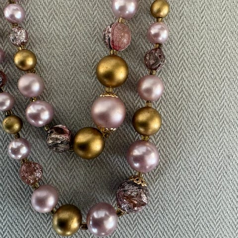 Nydelig armbånd med lilla perler. Glamorøst og feminint. Selges da jeg ikke rekker å bruke alle mine smykker. Det er bedre om noen andre får glede av det!