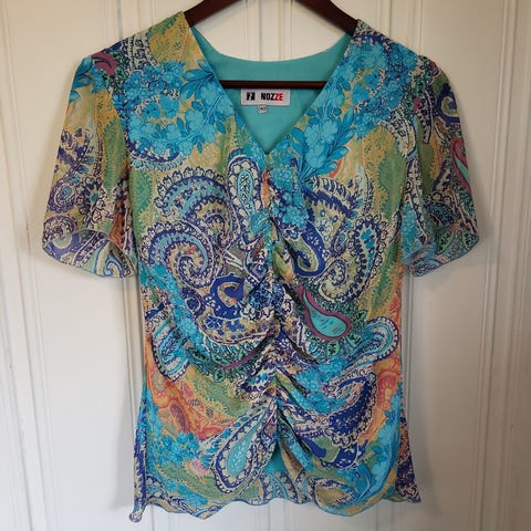 Mønstertopp, str 36/38. Fint stoff.