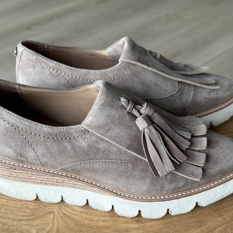Laura Bellariva utrolig lekre selskapssko. Brun fløyel, brunt semsket skinn og «bronsje-metallfarget» tupp! Brukt et par ganger meget pent.