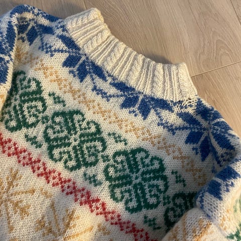 Håndstrikket ullgenser i flotte farger til dame, som en maleri. 100% ull.