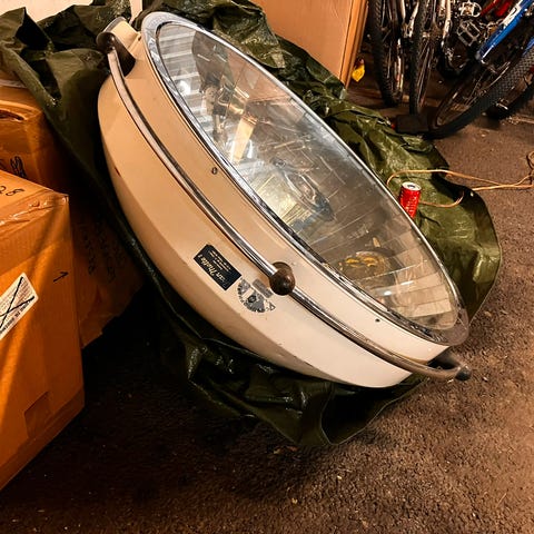 Lampe med frostet halvmåne, vært brukt i feltsykehus i Forsvaret på 70-80-90 tallet.