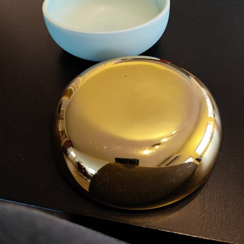 Fat med stjerne og juletre på. Rundt. Kan sendes.