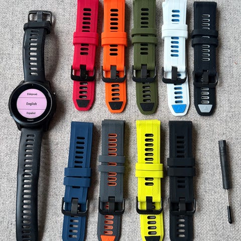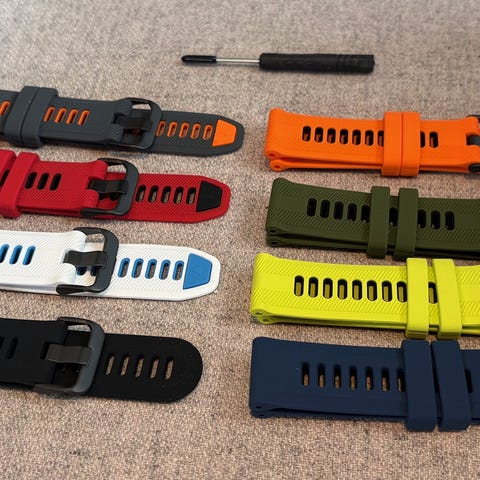 Herlig til Garmin selges. Myk og herlig å ha på. Jeg synes den er bedre enn den gamle orginale. Det følger med 2 stk skrujern. Man klikker på den nye reima og VIPPS har man en fløyelsmyk reim.