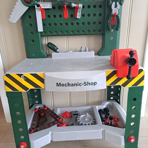 Arbeidbenk med 31 deler .Høgde 67 cm-Breide 35 cm - Lengde 45 cm . Har 2 stk