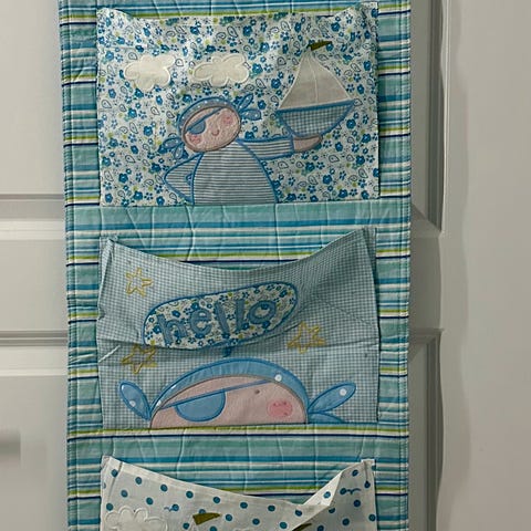 Selger søt oppheng med lommer til et barnerom.