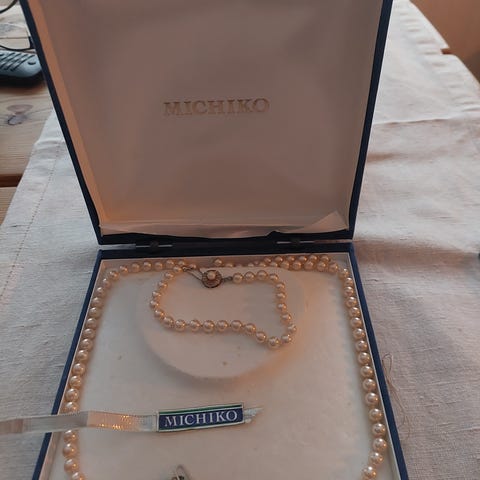 Vintage Silver Clasp Mikimoto Pearl Necklace,sølv