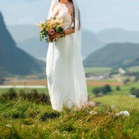 Selger brudekjolen min for 4000kr. Den er kjøpt på Ann Selda brudesalong.