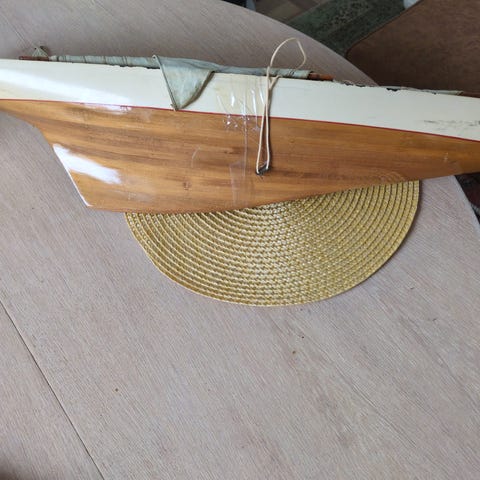 fantastisk flott stor seilskute160 cm.lang.125 høy. ca,150 år gammel,nylig restaurert båt og rigg,beholdt patina, flott blikkfang,selges 14000,-