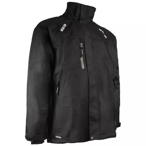 Vannavstøtende belegg på yttersiden som er polyester.Isolert med Permaloft syntetisk isolasjon som gjør jakken nokså lett,men likevel varm.