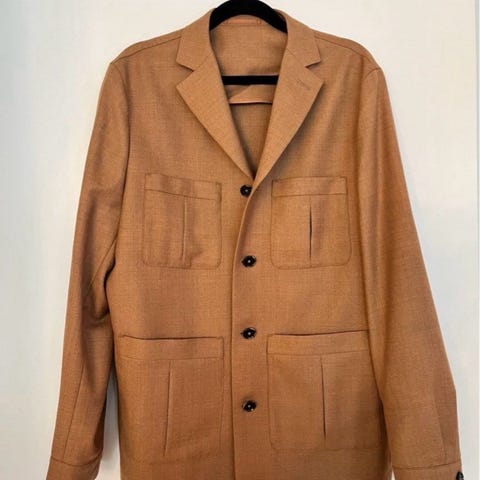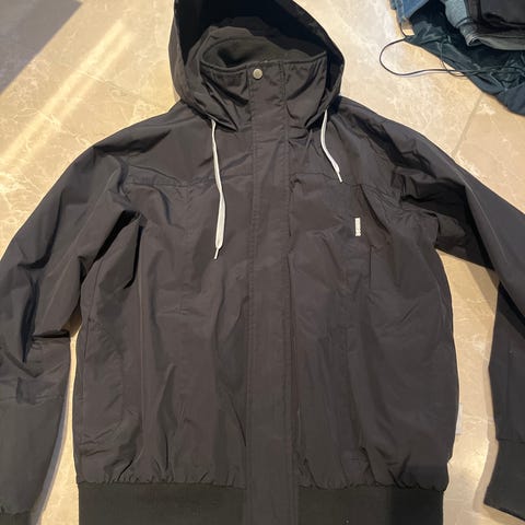 Stilig blazer/jakke i størrelse S. Jeg bruker vanligvis M og denne passer nesten. Vil si at det er en small-medium størrelse. Kragen kan tas av. Finnes bare én av denne i Norge. Selges billig! Førstemann til mølla! :)