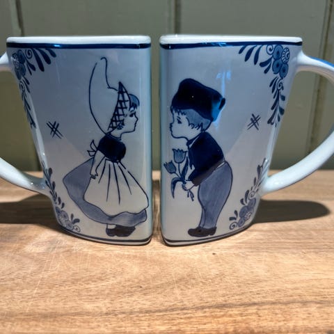 Delft sukker/fløtesett, kopp m/skål, ostehøvel etc