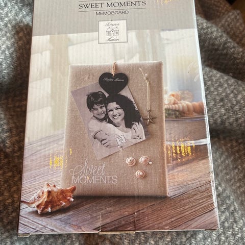 Lekre bilderamme - boks som åpnes og bilder festes på pute m pynte nåler.