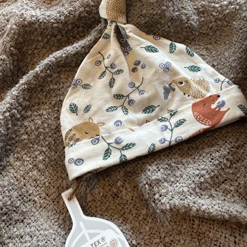 Lue til baby, størrelse 0-2 mnd selges. Kan sendes mot at kjøper betaler porto.