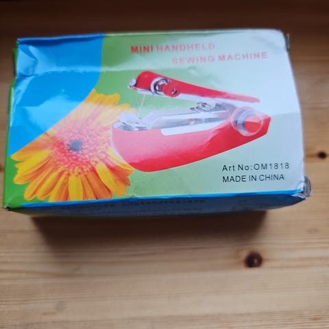 Håndholdt manuell symaskin du lett kan ha med deg i din veske. Kan til og med sy i jeans!