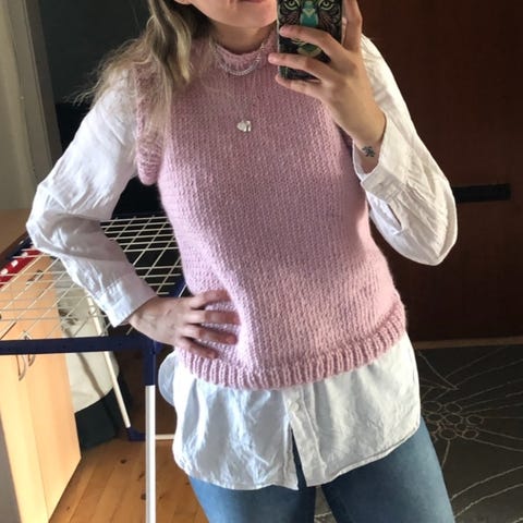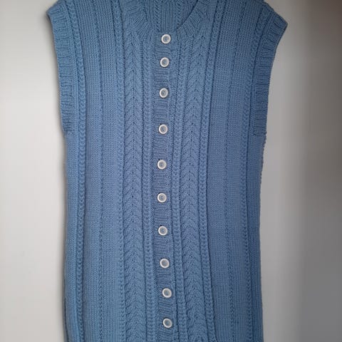 Håndstrikket grønn vest i 100% ren ny ull, Heilo fra Dale Garn, H 65 cm, B 53 cm, Kr 350