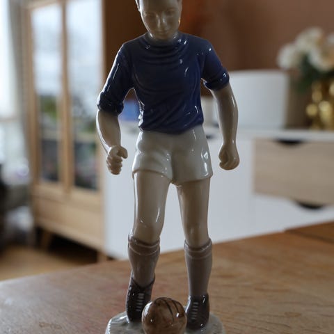 Meget pen figur av fotballspiller. Stemplet krone og tallene 1877 og bokstavene GDR. Høyde ca 16 cm.