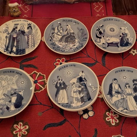 2 stk. Juleplatter fra Porsgrund Porselensfabrikk, ubrukte i original eske og med brosjyre, 1970 og 1972 + 1969 - limt selges.