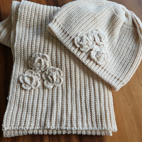 Eksklusivt håndstrikket sett i ull,