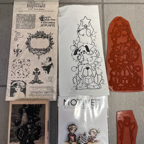 Nydelige organiske og moderne mønstre på stemplene. De ligger fortsatt uåpnet i pakkene. Liten pakke måler 5x5 cm og stor pakke måler 8x7 cm. Selges for kr 50,- sender gjerne mot porto.